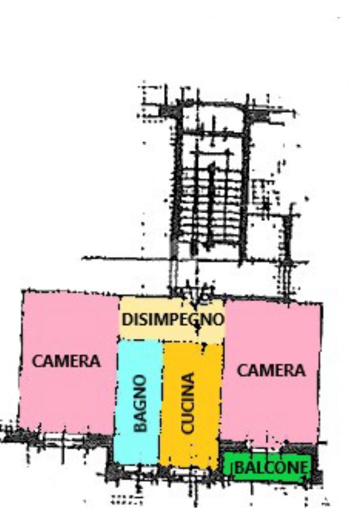 L'appartamento è composto da ingresso su disimpegno, cucina abitabile, due camere e bagno finestrato.