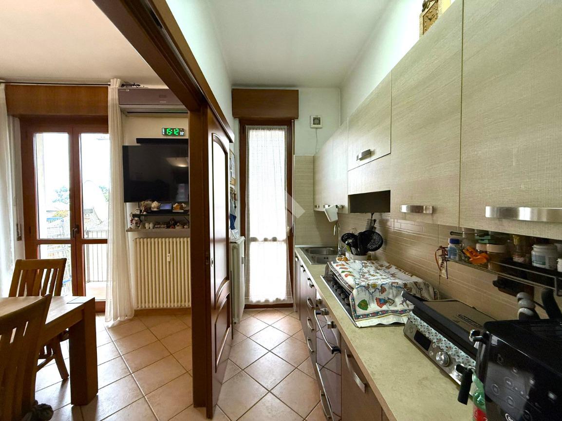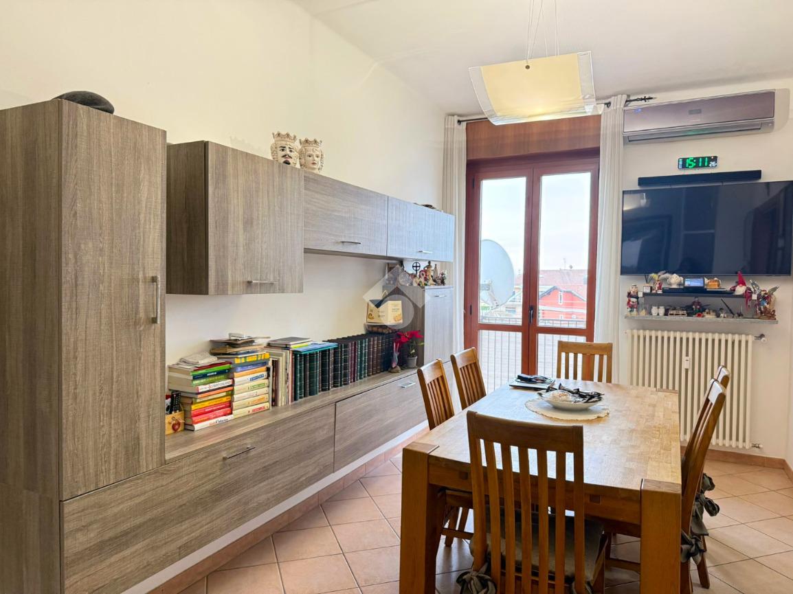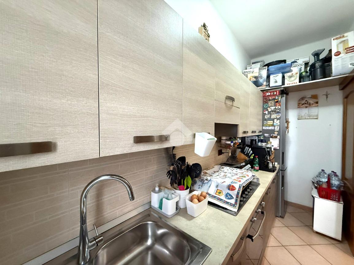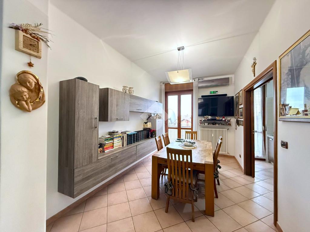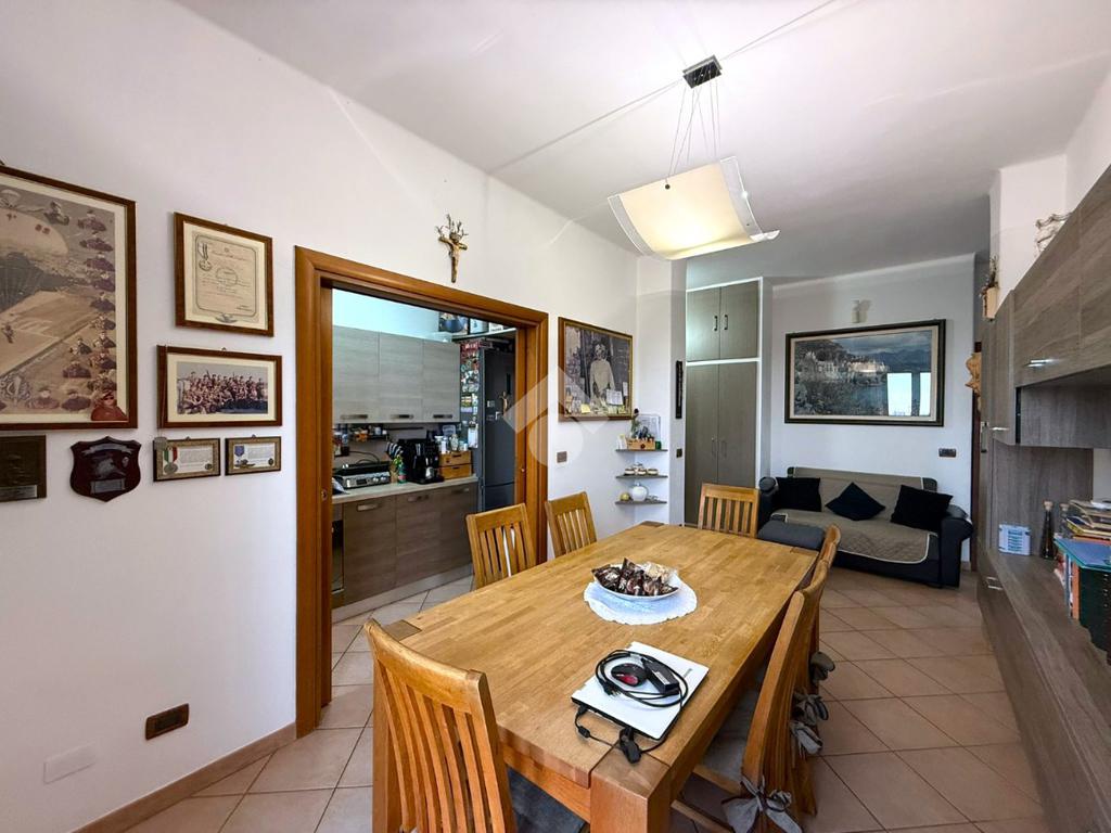 L’immobile gode di tripla esposizione e ha ingresso su un’accogliente sala da pranzo con accesso al primo balcone e al tinello, separato da porte scorrevoli.