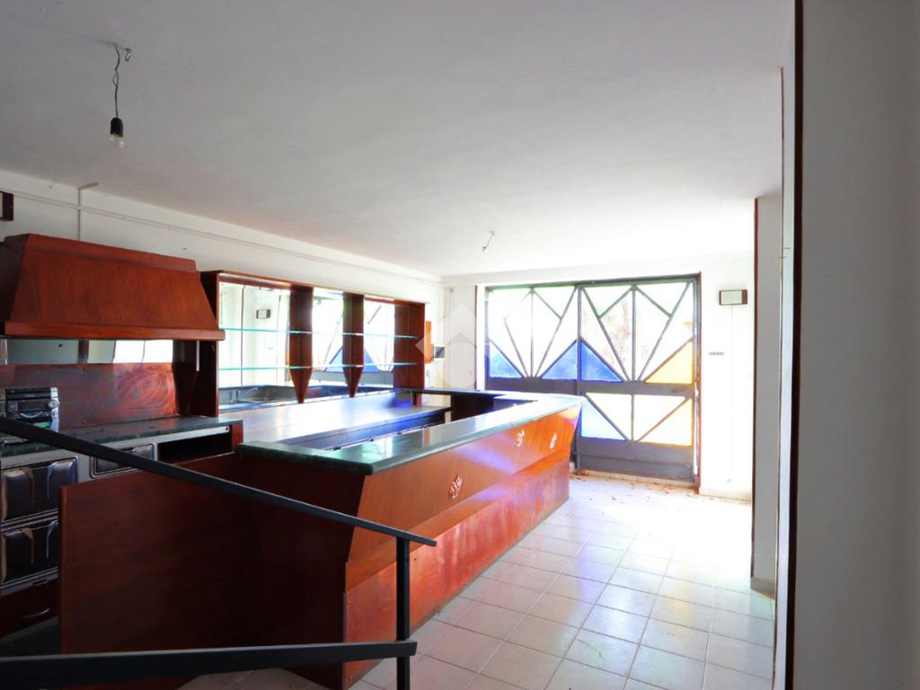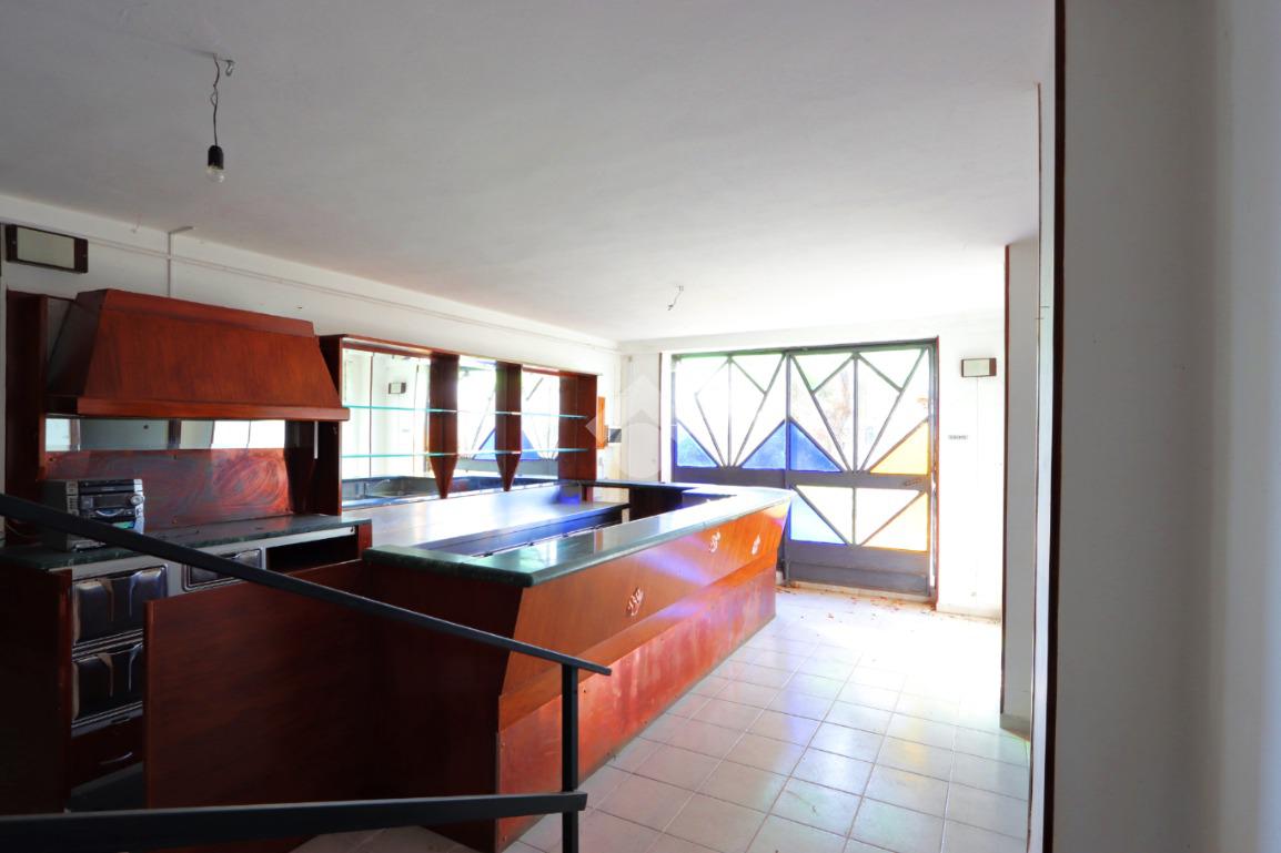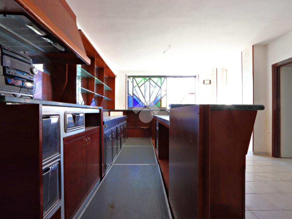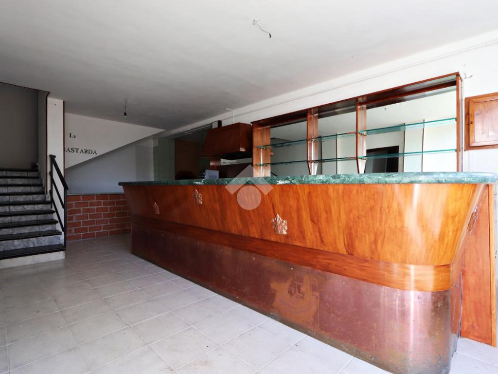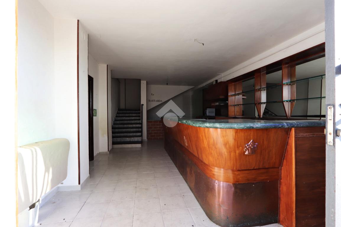 Il piano terra è destinato ad uso commerciale e in passato ha ospitato un’attività di ristorazione. Gli ambienti sono ampi e versatili, con due grandi sale su livelli sfalsati, cucina attrezzata, sala bar con bancone in legno, spogliatoio e servizi igienici.