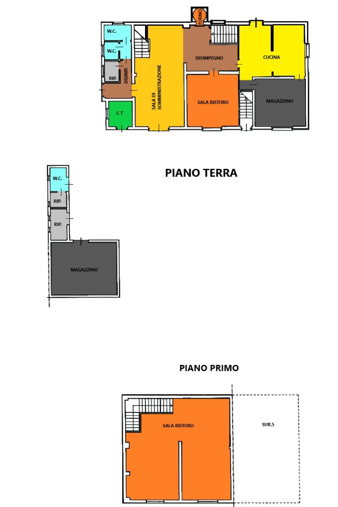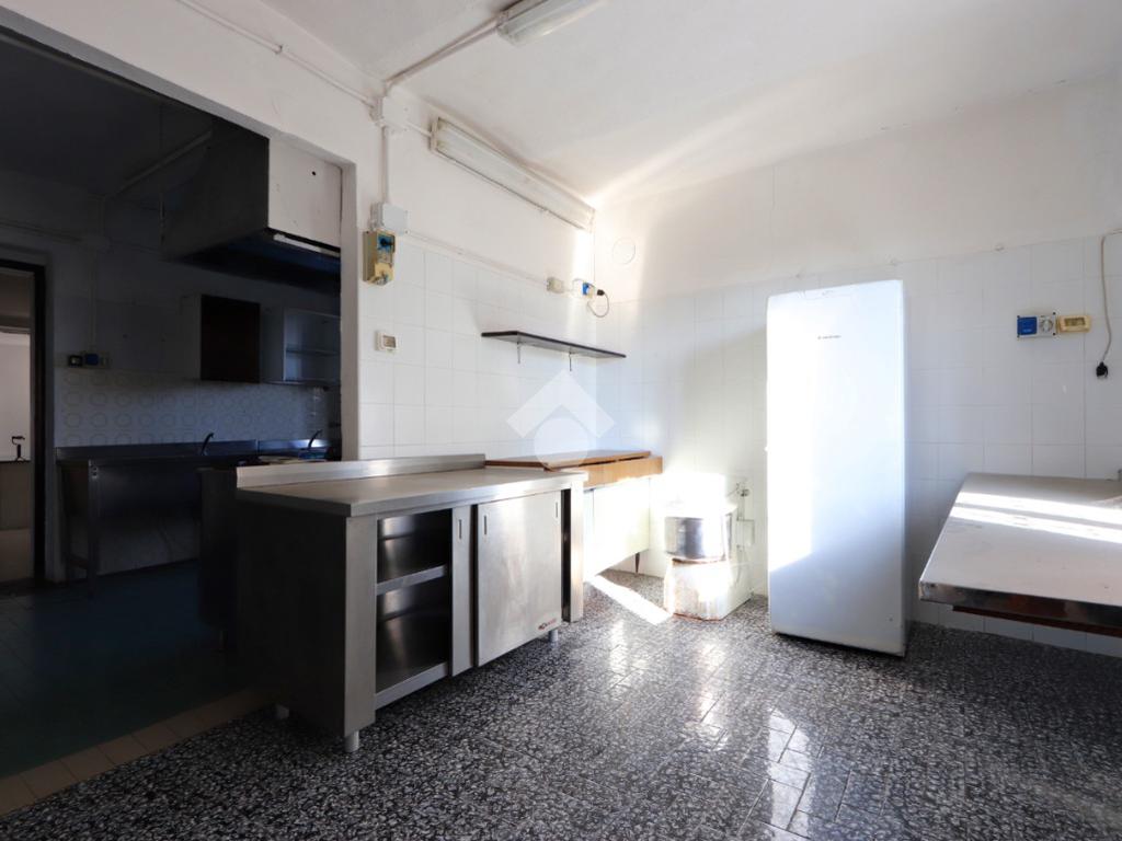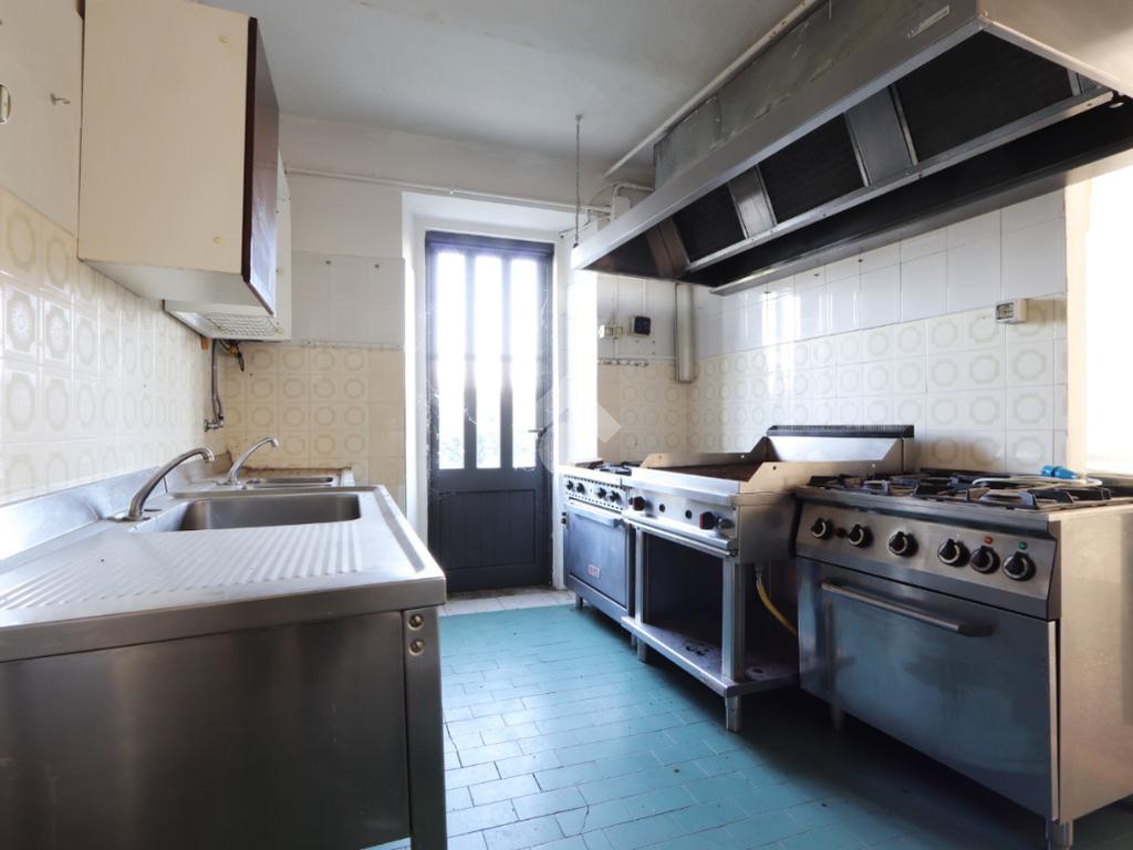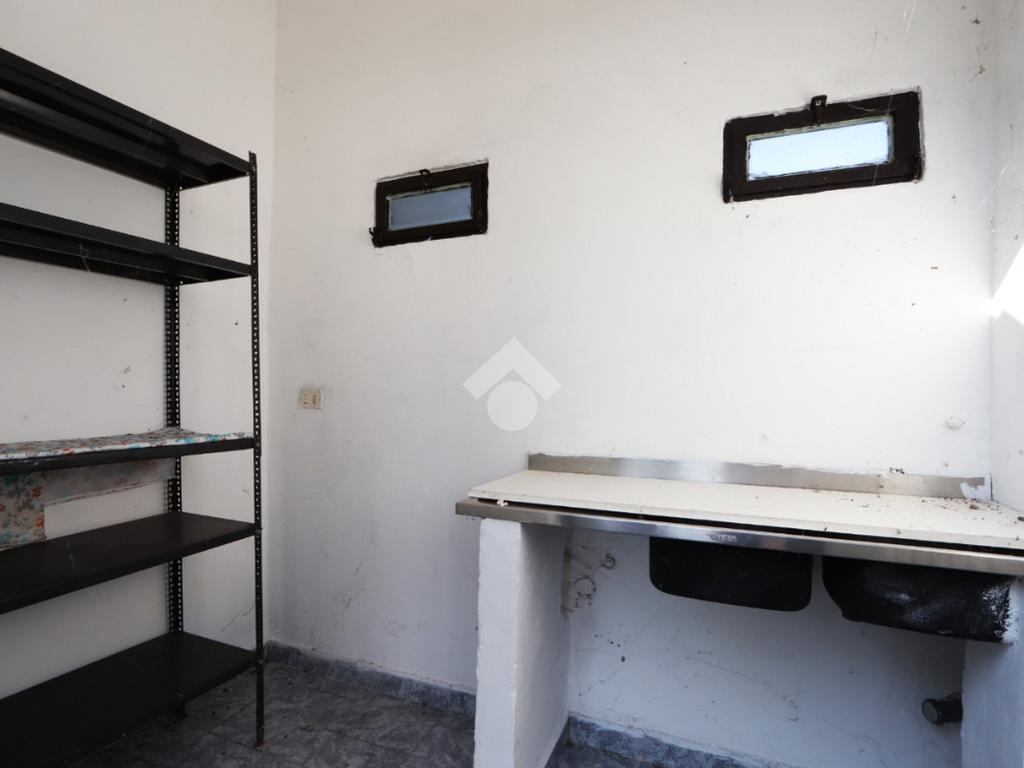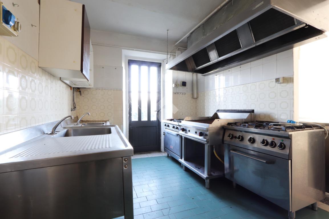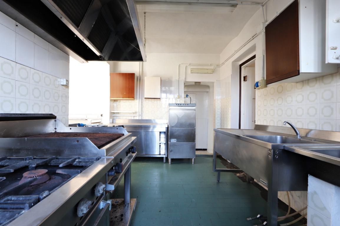 Il piano terra è destinato ad uso commerciale e in passato ha ospitato un’attività di ristorazione. Gli ambienti sono ampi e versatili, con due grandi sale su livelli sfalsati, cucina attrezzata, sala bar con bancone in legno, spogliatoio e servizi igienici.